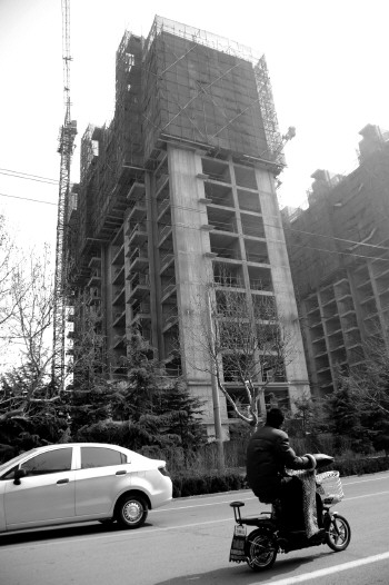 26日,记者在潍县中路一工地发现,楼盘框架已经基本建成,但是楼盘内几乎看不到工人干活的影子。较往年同期工地上已经忙碌赶工的状况来看,目前工地状况较为冷清。一位工地的负责人告诉记者,今年工地开工较往年晚了近十天,这位负责人说,“干活的工人很少,都在楼里干安装,大批工人还没有到位。”