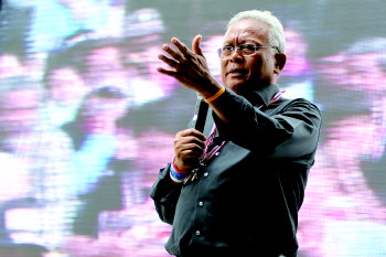 27日,泰国反政府集会领导人素贴在一场集会上讲话。