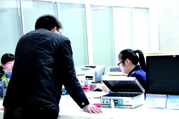 在行政审批大厅,客户正在办理公司业务。