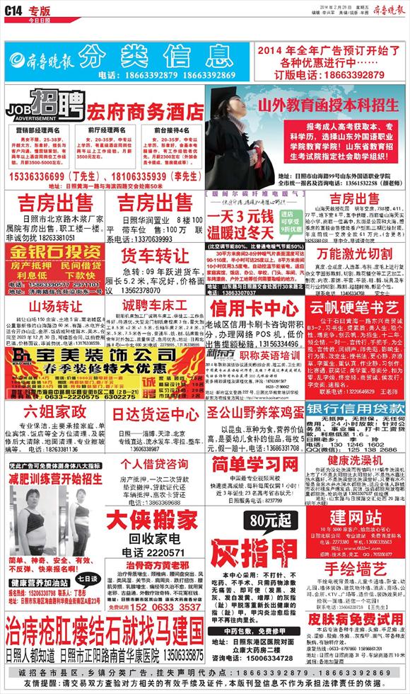 第C001版:济南封面广告