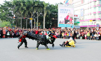 时间:2014年2月14日 自述:表演舞狮的时候,都是“大头佛”逗醒狮,不过这位“大头佛”显然是没Hold住,一屁股跌坐在了醒狮面前。 点评:头太大,重心不稳。
