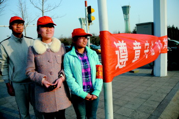 大学生志愿者街头倡文明