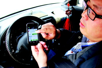 近日,城区很多市民都在用软件打车。3日下午,在康博大道,出租车王师傅最近每天通过打车软件能接到三、四十单业务,挣钱多了,减少了跑空车的现象。 本报记者 王小会 摄