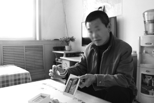 潘先生从电视上购买的手机外形和数据线很像iphone。 本报记者 谭正正 摄