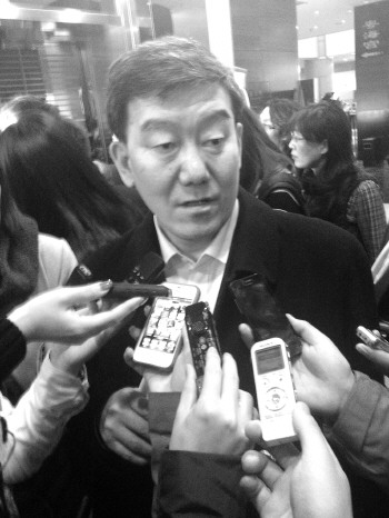 牛盾被记者“围堵”。 本报特派记者 李钢 摄