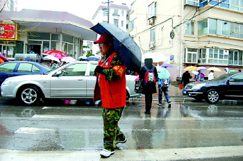 不论刮风下雨,张春霞都会守护在斑马线上。