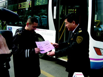 温馨巴士公司颁发奖励表彰宋智宏的义举。周延鹏 摄