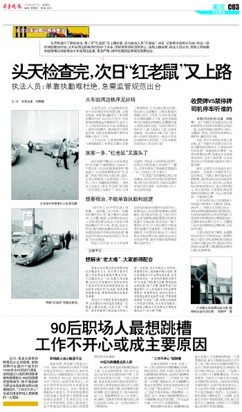 本报3月6日讯(记者 邱晓宇 通讯员 刘健 王娜) 装上出租车帽、安上打表器,“红老鼠”变身出租车做起了营运生意。6日上午,交警四方大队民警在长途汽车站针对“红老鼠”非法营运进行突击检查,当天共查处十余辆非法营运的“红老鼠”。