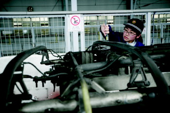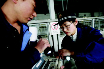 在外人看来,穿着厚厚的防滑电工鞋,爬上动车车顶随意走动、检查,也许是一份风光、刺激、“有感觉”的美差。但是对于史晓清而言,那些只是外人的想象,更多的是责任和压力。“每天我们会按照计划进行列车的检查,检查一次就要在车顶上来回走五六公里,还要不停蹲下、起立,检查车顶的各种设备,一整晚下来,人就像散架一样。”史晓清说,列车车顶的天线、受电弓是整个“体检”的关键,因为通讯和电力对于现代化的动车组来说好比是人的“神经”和“心脏”,它们完好无损才能确保线路上所有列车的行驶安全。因而史晓清和她的同事们丝毫都不敢马虎,必须一个车厢接一个车厢、一个零件接一个零件的检查。