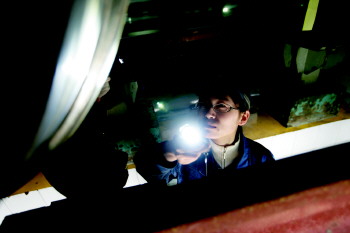检查完车顶,史晓清又和另外一名同事一起钻进了动车车底的工作沟,两人一组在车底进行转向架齿轮箱检查。工作沟深约1.7米,车底下光线较暗,弥漫着一股淡淡的金属怪味。为查验清楚每一个部件的状况,史晓清必须一直仰着头。通常情况下,一列8节车厢编组的动车做完一次一级检修,大约需要两个半小时,而每一次全面检修的过程,检修员都需要“问诊”动车组的上万个零部件。