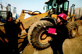 图三:中铁二十局女工程师胡风艳的工作对象是工地上的各种“大块头”设备。