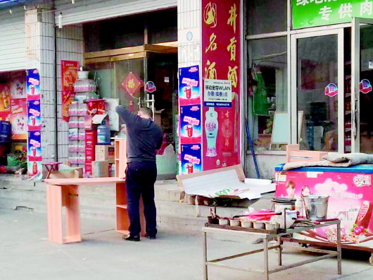 黄河四路一家商店老板正在装修店面。