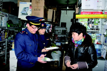 工商部门对小家电市场进行检查。 本报通讯员 王洪欣 摄
