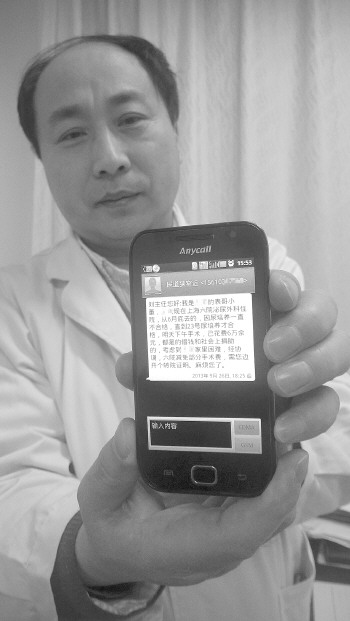 医师刘庆勇展示和患者之间交流的短信。
