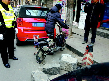 在小纬四路上,一个停车位的两端放着两个有模有样的“黄色警示墩”。尽管很像交警部门设置的正规标识,但被民警轻易识破。“这是把公共车位变为私有,为他人停车制造障碍。”市中交警大队杆石桥中队民警说。随后,民警将水泥墩抬到车上拉走。