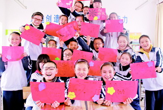 3月8日,古寨中学初一十班的同学以亲手绘制爱心卡片的形式表达对母亲的爱。