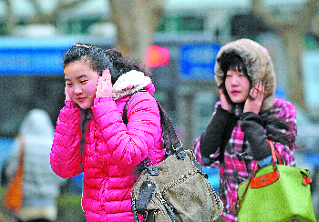 12日早晨起,济南市区大风降温十分凶猛,气温一夜之间下降了十几度,部分区域还飘起了“桃花雪”。街头行人捂紧帽子艰难行走,仿佛又回到了冬天。