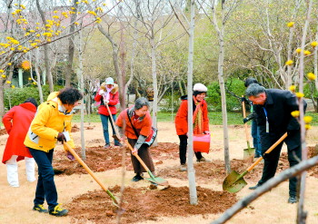 ▲12日,千佛山山友会的30多位代表来到千佛山北坡参加义务植树,为景区再添一片绿色,履行山友志愿者爱山护绿的光荣职责。