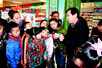 13日下午,在“3·15”国际消费者权益日到来前,济南市某小学组织学生来到超市,开展了“3·15”主题教育活动。面对琳琅满目的商品,天桥区物价局工作人员对孩子们进行了现场教育,上了一堂生动的校外课。