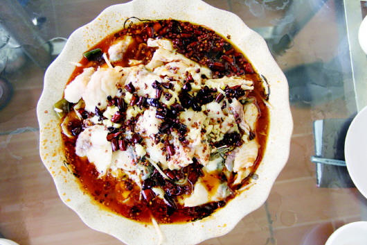 剧场街的水煮鱼色泽鲜艳,看着就想吃。