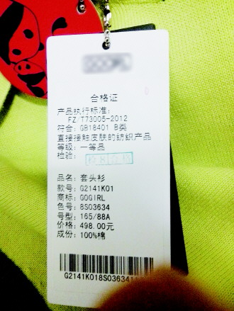 市民在购买衣服时,判断衣服新旧,可以吊牌为参考。 本报记者 韩微 摄