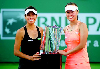 在15日进行的巴黎银行网球公开赛女双决赛中,头号种子、“海峡组合”彭帅/谢淑薇直落两盘击败布莱克和米尔扎,获得冠军,至此“海峡组合”11次进决赛,11次获冠军,效率惊人。 新华社发