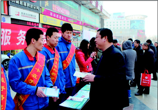 3.15消费者权益日到来之际,中石化滨州石油分公司工作人员走上街头服务市民。