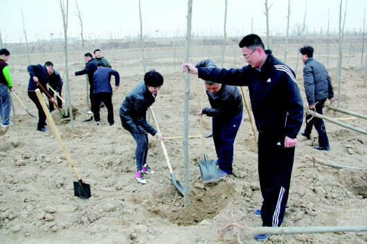 12日上午,县行政中心办公楼(包括检察院东附楼)全体单位的干部职工600余人,在县”三河两水一湖”生态文化区国丰生态示范园造林绿化现场参加了义务植树活动,共栽植法桐11000余株,为2014年春季林业会战吹响了号角。