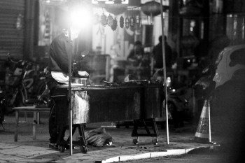 城区烧烤摊,烤肉串产生不少油烟。 本报记者 李军 摄