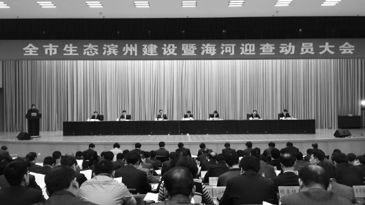 全市生态滨州建设暨海河迎查动员大会现场。