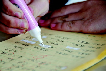 不少学生写作业时还在用有毒涂改液。 本报记者 王鸿哲 摄