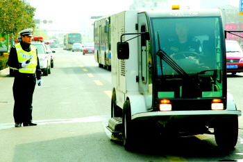 19日上午,一辆白色小车从经十路上开过,道路上的斑马线、分道线、网状线等顿时清晰如新。原来这是槐荫交警大队联合槐荫区城管局共同购置的省城第一台新型道路交通标线清洗车。该设备通过高温高压热融吸附清洗等原理,对附着在交通标线上的灰尘污渍进行清理,使标线一下子变得清晰明亮起来。