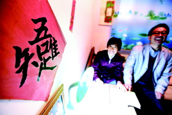 卧室墙上挂着“唯吾知足”,是王升安老两口的生活写照。