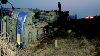 夜间行车走神货车翻沟里
