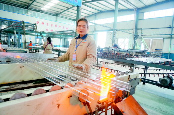 潘秀云每天的工作是将玻璃管通过高温操作瞬间完成封闭,送入全自动化镀膜生产线,变为高品质的真空玻璃管。“下班后走十几分钟就能到家了。”