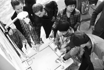 市民争相体验高科技的节水产品。
