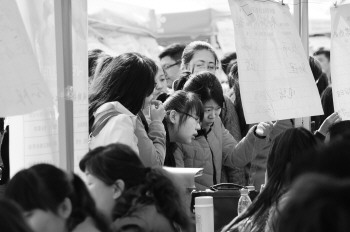 “现在的学生不像是来参加招聘会的,感觉更像是在参观,没有准备简历的学生能占到一半以上,毕业生在心理上对找工作还没有足够重视。”一家网站的主管李先生称,为顺利招到人,他们将学历要求由原来的本科降低为自考本科,尽管这样,到中午11时只有三名学生填写了求职表格。据观察,在招聘会现场企业表现更为积极,他们站在展板面前,主动招揽来往的学生。