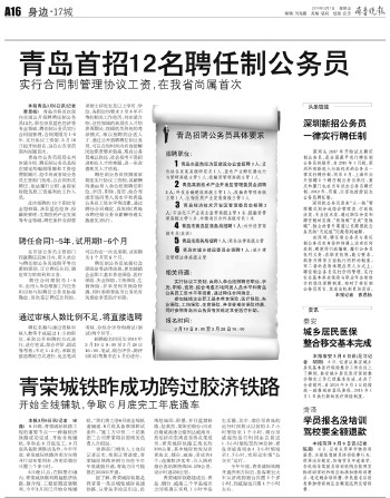 ◥本报曾对青岛首招聘任制公务员进行报道。
