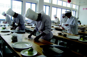 2014年山东春季高考首次增加技能测试,青岛有3所学校成为考点,其中酒店管理职业技术学院承担中餐加工和西餐烹饪考试工作。23日的测试为中餐加工。