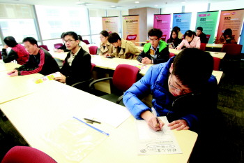 应聘者认真填写简历。