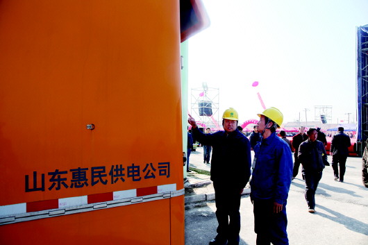 21日上午,惠民第三届苗博会开幕,惠民供电公司党员服务队在现场做好保电工作。