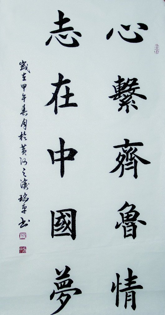 李瑞平书法初学“欧体”,书法作品运笔讲究法度,字体险峻秀美,刚劲精密,笔笔不苟,方圆兼备,稳健含蓄,在淳厚匀整中寓意深厚的功力,竖笔挺拔劲健,在自己的实践摸索中,使作品得到了相完善。