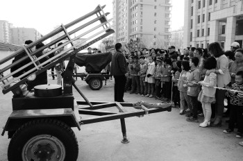 “火箭弹打到天上降雨,对环境有污染吗?”在火箭人工增雨作业车前,正在上二年级的学生李玉娇疑惑地问。