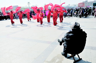时间:2014年3月15日 自述:一老者坐在场地中间观看秧歌舞。 点评:天冷,一起动起来吧。