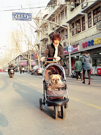 时间:2014年3月18日 自述:现在出门真是爽,儿童推车里面躺;主人对宠物真不赖,不用走路就能逛。 点评:待遇真心不错。