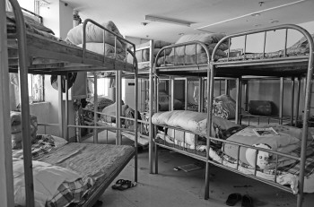 鸿顺花园K区三楼一学生公寓内狭小的房间里安置了近30个床位。 本报记者 郭庆文 摄