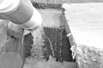 在西关街棚户区改造回迁安置工地,抽出的地下水直接排入下水道。 本报记者 王传胜 摄