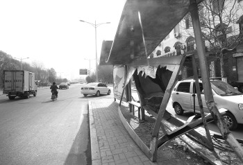 面目全非的公交站台。 本报记者 邓兴宇 摄