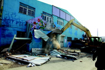 中韩街道执法人员正在对无证幼儿园进行拆除。(资料片)本报通讯员 张辰源 摄