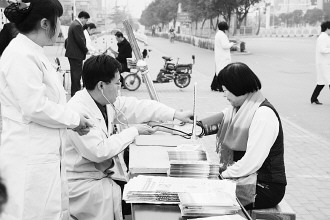 24日上午,医务人员在光明广场开展结核病健康咨询和义诊活动。 本报记者 赵艳虹 摄